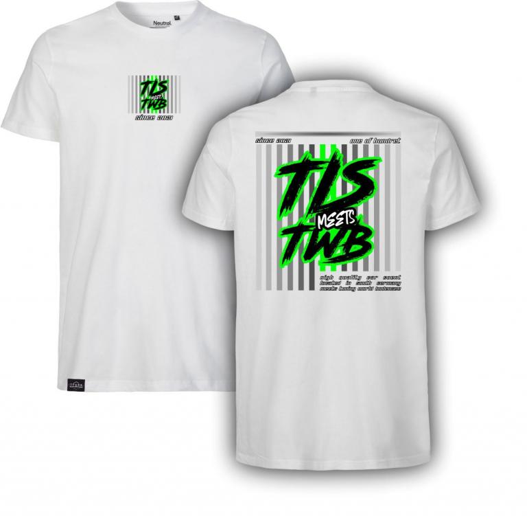 limitiertes weißes Shirt in einer perfekten Qualität mit einem weiß/grüß/grauen Print auf der Vorderseite (Brust mittig) sowie einem weiß/grüß/grauen Print auf dem Rücken. Auf der Vorderseite des Shirts befinden sich im unteren Bereich (links) noch unser gewebtes TFGRG MOTORWEAR Label in den passenden Farben